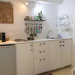 El apartamento brinda servicios de autoservicio con una pequeña cocina y un comedor al aire libre.